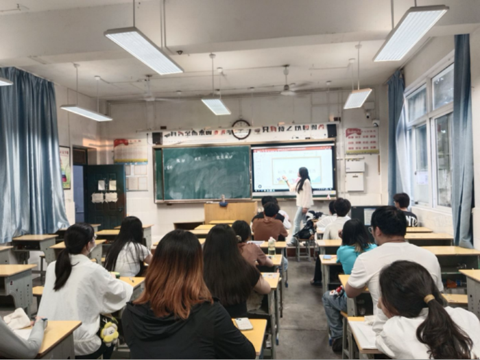 在教学观摩环节,同学们深入课堂一线,沉浸式观摩高中日语教学。课上,同学们认真记录教师授课技巧、课堂活动设计与师生互动细节,近距离观察一线教师如何将日语知识生动化、情境化。课后,同学们与见习指导教师展开深入交流,探讨日语习得特点、课堂管理智慧及趣味教学法的具体应用。