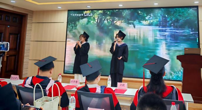 典礼伊始,毕业纪念视频缓缓播放,一帧帧画面串联起学子们的成长足迹,从初入校园的青涩,到课堂上的求知若渴,再到社团活动的青春洋溢,过往片段勾起诸多回忆,让现场弥漫着温馨与不舍。随后,毕业生代表献唱《裹着心的光》,歌声传递着对未来的期许与勇气,也饱含着对学院、师长、同窗的深情。