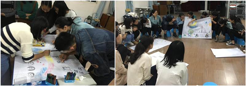 活动以团体绘制个性名片、自画像、协作绘画、绘画接力等为主要方式,通过绘画这一非语言的表达方式抒发内心情绪、改善个人在团体中的交流方式,并达到促进成员心灵成长、培养团队协作精神的目的。 活动分设绘画组和观察组,绘画组在绘画过程不得有任何形式的交流,组员通过观察、调整、应变、协作在十五分钟内共同完成一幅画作。绘画结束后,团体间分享绘画作品及当时的想法、情绪,并在互相支持、互相包容的氛围中获得自我成长。