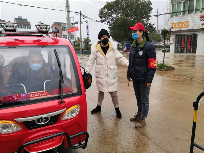 19英语5班学生赵佳面对严峻疫情,在所在村安徽省芜湖市三山区保定街道沿湖村,自觉配合疫情防控,积极参与疫情防控志愿者工作,在沿湖村疫情防控劝导点,挨家挨户宣传防疫信息,解读防疫通知精神,在村口员做好出入登记,核查进村车辆,同时协助当地政府工作人人员做好宣传、排查等工作。