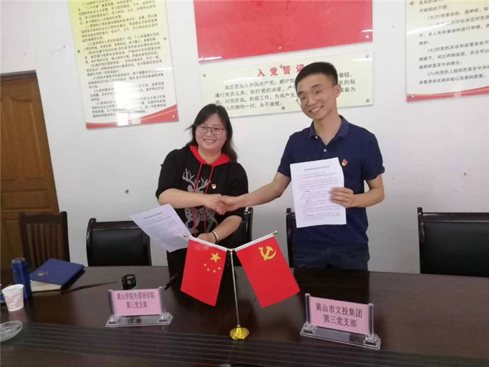 活动中,歙州阳产土楼文化旅游发展有限公司负责人张剑、支部负责人汤晓向大家详细介绍了以旅游扶贫为抓手开展党建工作的情况,重点介绍了阳产村旅游建设现状,区域文化特色以及市政府有针对性的开展的旅游扶贫项目进展情况。金年会官网党委书记黄先进对该公司在旅游扶贫中做出的成绩表示充分肯定,结合金年会官网办学方针以及人才培养目标、党建工作开展情况就双方开展党建合作提出了具体意见建议。双方就今后合作的形式和内容进行了深入交流与探讨。随后金年会官网第三党支部书记李建萍与阳产土楼文化旅游发展有限公司支部负责人汤晓共同签署了党支部的共建协议。签约仪式结束后,两个支部成员合影留念并走进阳产村,实地了解阳产村的建筑格局、村民的生活状况及旅游开发的情况。