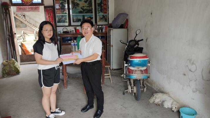 黄先进一行到访期间,对谌晨晨的家庭生活情况、疫情期间网上学习情况以及新学年的打算等等进行了详细了解,将其在校的表现情况向爷爷进行了详细介绍。同时,鼓励其继续保持良好的精神状态,刻苦学习,积极参加学校各项活动,利用暑期积极参加家乡的社会实践活动,并给其送上了1000元的家访慰问金。