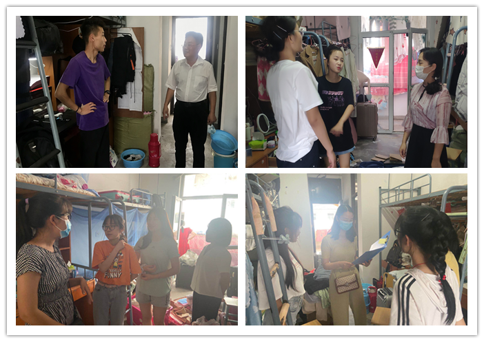 9月4日、9月7日,金年会官网分别迎来2019级、2018级返校学生。学院党政领导、团总支负责人、辅导员、专业导师在学生返校当日深入学生宿舍,走访慰问学生,送去暖心关怀。走访期间,院领导与学生热情交流,仔细询问大家返校路途防护,暑期的生活情况和家庭情况等,了解他们返校后的感受,认真倾听他们的建议;并嘱咐学生做好宿舍卫生、通风、自我防护等事宜,提醒他们保持良好的作息规律,严格遵守疫情防控期间校园的管理规定。