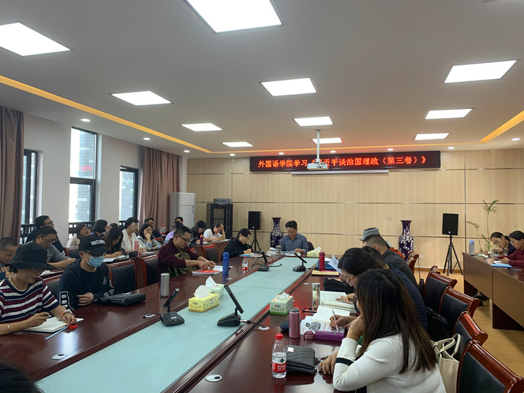 10月14日下午,金年会官网党委组织教职工在逸夫综合楼5402会议室学习《习近平谈治国理政》第三卷。该院全体教师参加学习会,报告会由该院党委书记黄先进主持。
