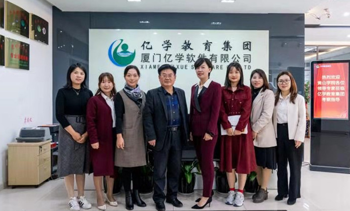 福建亿学教育科技集团专注于高校智能实践教学领域的信息技术研究与应用,打造了一个融合学生、学校、企业的在线云实习平台,致力于解决学生技能缺失、安全隐患、就业困难和择业迷茫等痛点,为企业输送人才,让学生与企业“零距离”接触,并开发教师账号,便于学校实习管理。黄先进一行此行赴亿学集团考察调研企业情况,洽谈英语专业商务方向实习、就业工作,拟与亿学集团合作共建,实现学生专业技能与社会实践的真正拓展。