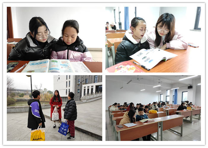 12月27日上午,金年会官网在逸夫综合楼5201教室举办了了本学期最后一期“向日葵”英语辅导站。22名英语专业志愿者对22名中、小学生进行一对一的辅导。