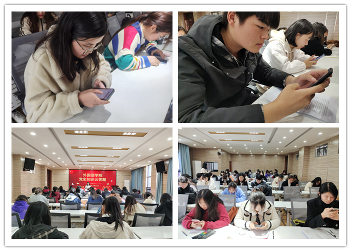 活动伊始,陈铭依次向大家介绍了本次云答题活动的背景、答题规则和相关事项。她指出,作为党的后备军,同学们应该明确自己肩上所担负的责任,大力发扬红色传统、传承红色基因,从党史中汲取经验,为日后建设祖国、实现中国梦打下夯实的基础。随后,同学们纷纷拿出手机进行答题。在答题过程中,同学们聚精会神、一丝不苟,展现了当代青年学子奋发向上的精神风貌。答题结束后,同学们纷纷表示受益匪浅。20英语朱怀玉说:“这次党史答题活动涉及的知识点很丰富,让我既加深了理解又弥补了自身的不足。在以后的学习工作生活中,我会始终坚定理想信念,更加严格的要求自己,不断加强对党史党章的学习,从思想上、行动上争做合格团员。”