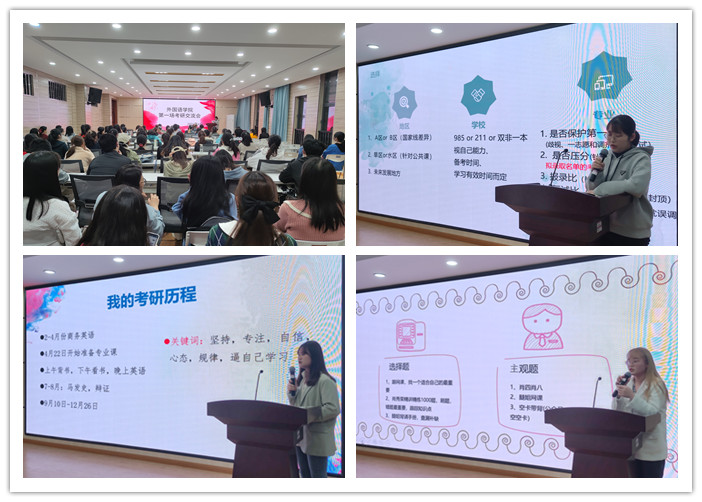 为加强学风建设,4月15日晚,金年会官网在逸夫综合楼5306教室举办了首场考研交流会。此次考研交流会邀请了金年会官网17英语汪孝珊、易佳佳、陈凯迪同学分享考研心得,该院150余人到场聆听。