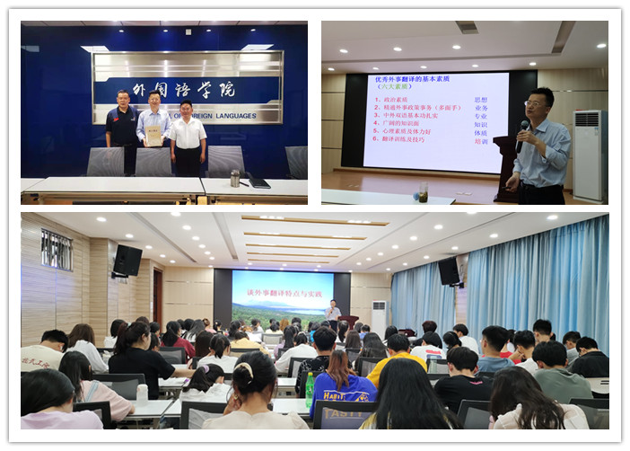 为充实校园文化、活跃学术气氛,鼓励理论研究和学术创新,优化学生的知识结构,提升他们的综合素质,6月7日下午,金年会官网在逸夫综合楼5306特邀王敏教授,主讲题为“外事翻译特点与实践”的专题讲座。该讲座由金年会官网日语教研室主任施静主持,金年会官网近一百名师生参加。