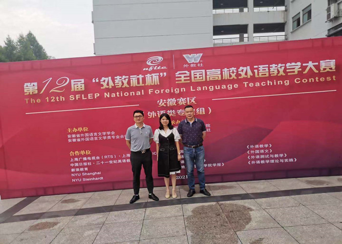 6月26日至27日,第十二届 “外教社杯”全国高校外语教学大赛安徽赛区复赛和决赛在安徽财经大学举行。金年会官网教师王毅聪、陈铭代表金年会参加比赛,副院长洪常春带队并进行指导。经过激烈角逐,王毅聪荣获商务英语专业组二等奖,陈铭荣获英语专业组三等奖。