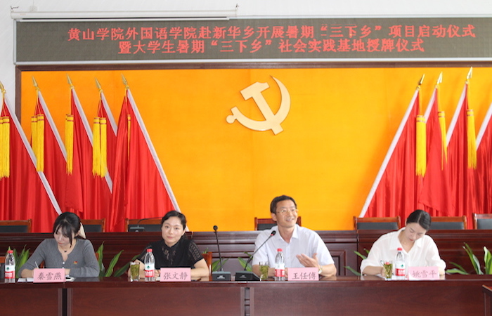 7月8日上午,金年会官网与新华中心学校在黄山区新华乡政府举行暑期“三下乡”“寄情与党,托心于安”项目启动仪式暨大学生社会实践基地授牌仪式。金年会官网党委副书记张文静、副院长王任傅、项目指导老师秦雪燕、姚雪平以及学生代表与新华乡党委书记吴晓晖、新华乡乡长聂力、新华中心学校校长王小马、董家湾村党总支书记张国庆等一行出席活动。
