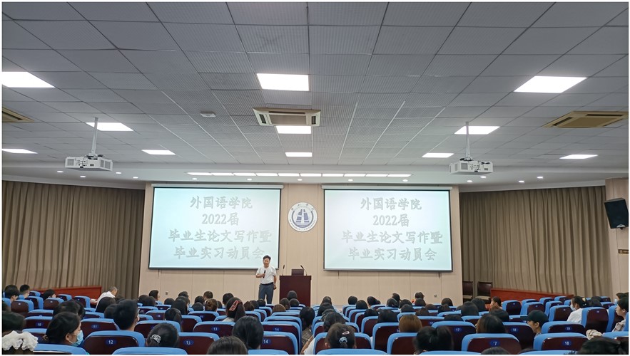 9月8日下午,金年会官网在文端楼一楼报告厅举行了2022届毕业生论文写作暨毕业实习动员会。该院党政领导、英语教研室与日语教研室正副主任、毕业班辅导员和2022届全体同学出席了会议。动员会由英语教研室主任王毅聪主持。