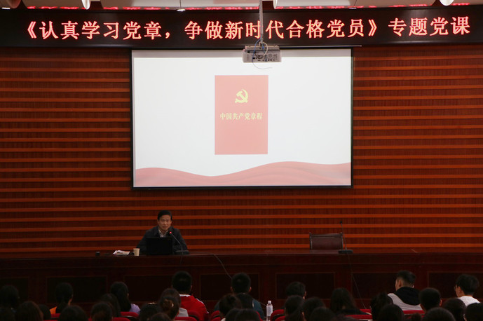 报告中,刘英旺梳理了党章的历史沿革,对党章的主要内容、基本精神、地位作用等进行了详细阐述和深入解读。他指出,《党章》的每段内容、每个观点甚至每句话,都是以科学的理论和宝贵的实践经验作支撑的,经过了高度概括和提炼,内涵丰富,寓意深刻。广大党员和入党积极分子要牢固树立党章意识,把党章作为党性修养的根本标准,一要在增强党性观念上下功夫,二要在增强党员意识上下功夫,三要在强化党章的权威意识上下功夫,四要在应用上下功夫。广大青年学生要进一步树牢理想信念、根植为民情怀、锤炼过硬本领,写好新时代JINNIAN金年会人的奋进之笔。