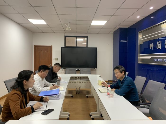 会上,黄先进代表学院领导班子,汇报了近期疫情防控、安全稳定、人才引进、教学科研、学生管理等方面的工作。刘英旺对该院安全管理和疫情防控工作给予充分肯定,他提出要深刻认识当前国内疫情防控的严峻形势和高校安全稳定工作的风险点,认真贯彻学校疫情防控和安全管理工作的部署要求,从严从紧抓好校园安全稳定和疫情防控工作,筑牢校园防疫屏障;要聚焦师资队伍建设,强化人才引进工作。结合自身学科专业发展实际,全方位培养、引进、用好人才,营造识才、爱才、用才的环境;要正确认识外语专业的发展处境、发展关键和发展方向,深入挖掘师资队伍中的科研潜力,重视科研团队、科研氛围建设,强化教师科研内生动力,助推学科建设发展。
