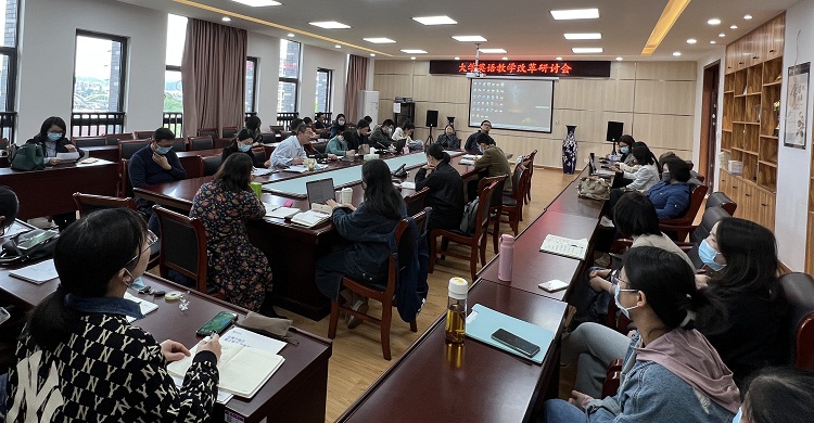 2022年4月20日下午,金年会官网在5402会议室召开大学英语教学改革研讨会。会议由副院长王任傅主持,学院党政领导及全体大学英语教师参加了会议。