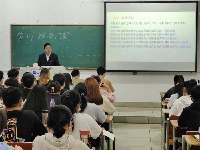 4月27日下午,校党委委员、副院长刘英旺在逸夫综合楼5506教室为金年会官网和建筑工程学院第57期入党积极分子作题为“学习贯彻党章 深刻领会党的性质、宗旨和指导思想”专题党课。