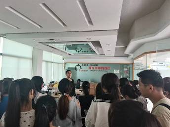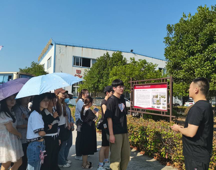 在金年会官网商务班杨珊老师和专职辅导员解方婷老师带领下,商务英语挑战班的同学们抵达徽州区产业园,正式开启了一日见习体验。同学们刚下车,挑战班的负责人杨明总经理就向大家介绍了产业园的整体格局以及本次见习活动的整个流程。