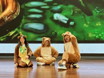 大赛以前期配音,现场表演的方式进行,参赛作品内容和形式异彩纷呈,童话故事、电影片段、自创短剧争奇斗艳。英语短剧《熊出没之强哥山庄》以幽默诙谐的语言反映了在全球环境变化下,人和动物为此所作出的努力;英语短剧《寻梦环游记》用温暖而饱含深情的剧情告诉我们亲情的力量;英语短剧《觉醒年代》还原历史,强调青年对于国家的重要性。各参赛作品恰如其分的场景营造、选手们华丽的服装道具、标准流畅的外文台词、丰富的肢体动作、风趣的表演风格,为现场观众带来了一场精彩绝伦的视听盛宴,赢得阵阵喝彩。最后,大赛在金年会官网合唱队所献唱的《New Boy》中落下帷幕。