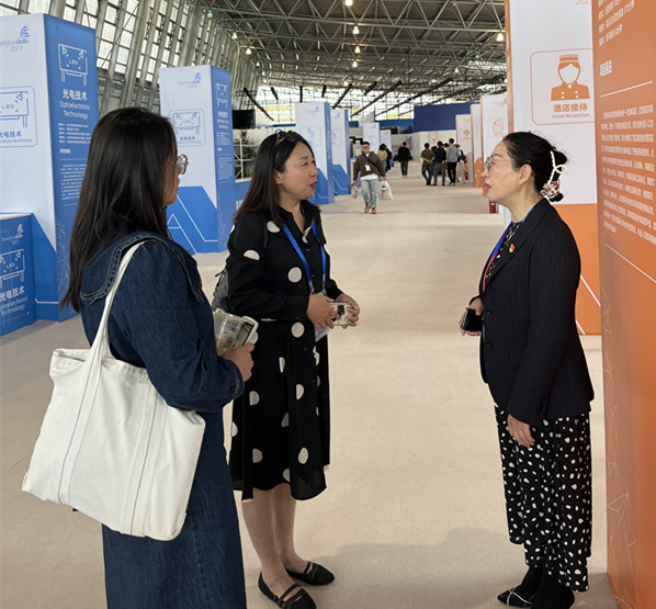 上海商学院为此次大赛中的酒店接待项目上海市选拨赛技术支持单位,该校酒店管理学院院长姜红及酒店接待项目教练团队接待了纵兆荣一行,姜红首先介绍了此次5名选手参加比赛的情况,然后详细介绍了此次选拨赛的流程安排、裁判组成等。酒店接待项目分为模块一前台,包括计算机系统进行预订、入住退房、投诉处理、旅游信息、突发状况处理等考核内容;模块二后台,包括询价回复、预订平台投诉、收益管理计算等考核内容,比赛全程使用英文与客人交流或进行书面书写。该项目全面考察了选手的综合职业素养,包括沟通艺术、礼仪修养、良好的英语交流、计算机应用等业务知识和技能的熟练运用。