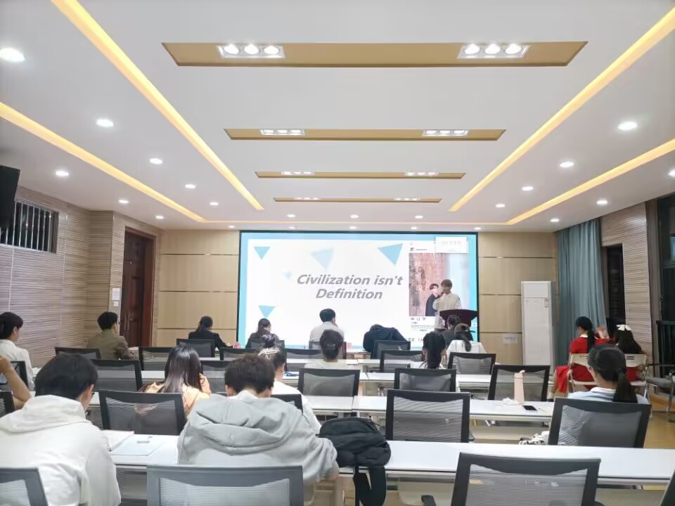 决赛分为定题演讲、即兴演讲、评委问答三个环节。选手以“My Interpretation of Civilization”为主题进行演讲,将自身经历与时代背景相结合,阐述自己对文明的理解。比赛过程中,选手们激情四溢、慷慨激昂、各抒己见,为在场观众带来了一场精彩的视听盛宴。比赛结束时,Adrien对选手们的精彩表现进行了点评,他鼓励选手们再接再厉,再创佳绩。
