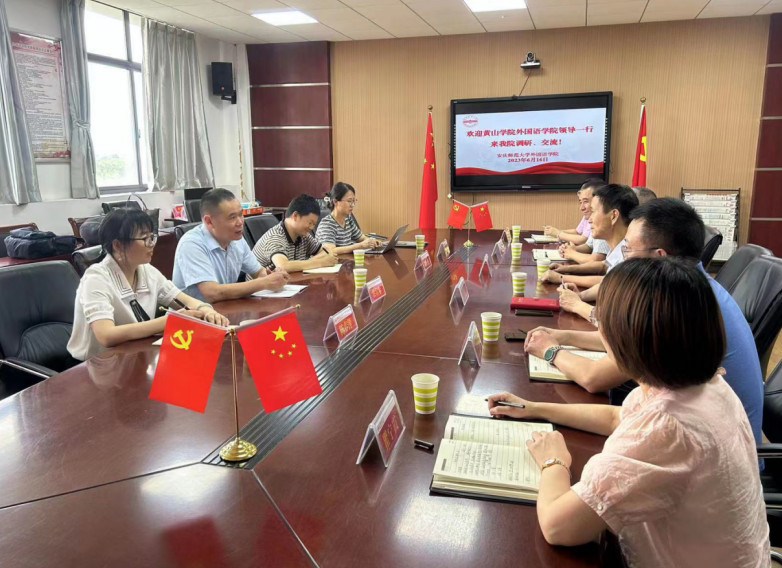在安庆师范大学,该校金年会官网负责人介绍了安庆师范大学必修、选修、重修和自修为一体的“四修一体”分层、分级、分类大学英语教学改革体系。会上,双方还就党建、科研、研究生招生等方面进行了座谈。
