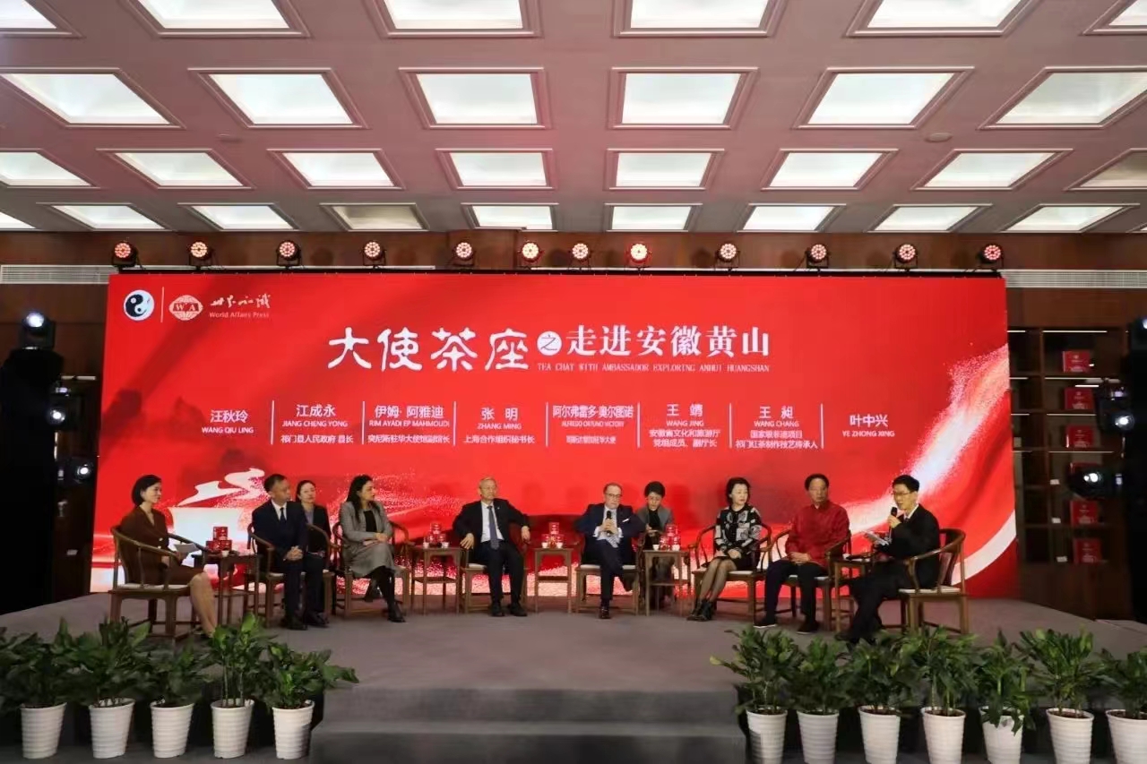 纵兆荣老师出色完成“大黄山世界级休闲度假旅游目的地圆桌会议”的外宾接待和大会的同声传译工作;隋丽爽、徐慧老师为出席活动的大使担任耳语翻译;洪常春老师为来自哥斯达黎加的驻华大使阿尔弗雷多·奥尔图诺担任随身翻译,并陪同大使来到祁红科技博览园,共同感受安徽传统茶道、茶艺。
