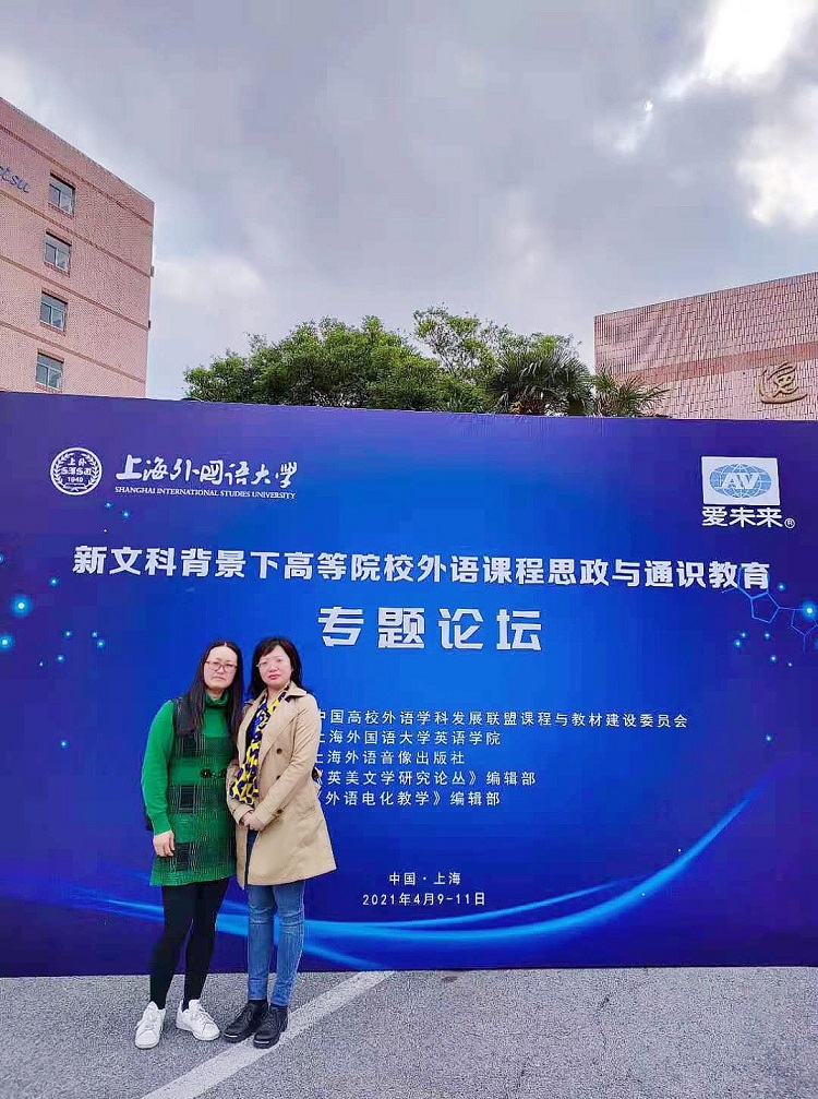 2021年4月9日至11日,“新文科背景下高等院校外语课程思政与通识教育”专题学术论坛在上海外国语大学召开。金年会余艳艳、陈桂花两位老师和来自全国各地多所高校外语教育领域的300余位专家、教师参加了此次论坛。