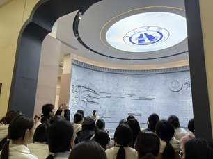 随后,学员们走进校史馆。在解说员引导下,大家驻足于珍贵史料前,从学校创办历程中的艰辛历程到历代师生的奋斗事迹,深刻感受学校与国家发展同频共振的厚重底蕴。泛黄的文献、鲜活的案例让团员们直观体会到办学治校的非凡业绩,进一步坚定了传承校训精神、勇担时代使命的信念。