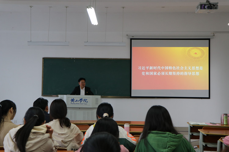 4月21日晚上7点,金年会官网党委书记、院长黄先进在逸夫综合楼5201为金年会官网第55期党校积极分子作了题为《习近平新时代中国特色社会主义思想是党和国家必须长期坚持的指导思想》的党校课程讲授。