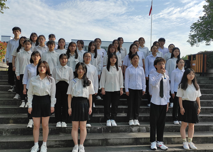 升旗仪式开始前,全体师生提前到达指定地点集合整队, 静待五星红旗的升起。七点整,鲜艳的五星红旗在英姿飒爽的国旗护卫队员的护送下,伴随着庄严的《义勇军进行曲》,冉冉升起,迎风飘扬,现场师生怀着对祖国的无限热爱,面向国旗行注目礼。升旗结束后,金年会官网合唱队全体歌唱《不忘初心》,歌颂中国特色社会主义最美道路,引导同学们不忘初心牢记使命、向着第二个百年目标奋斗。