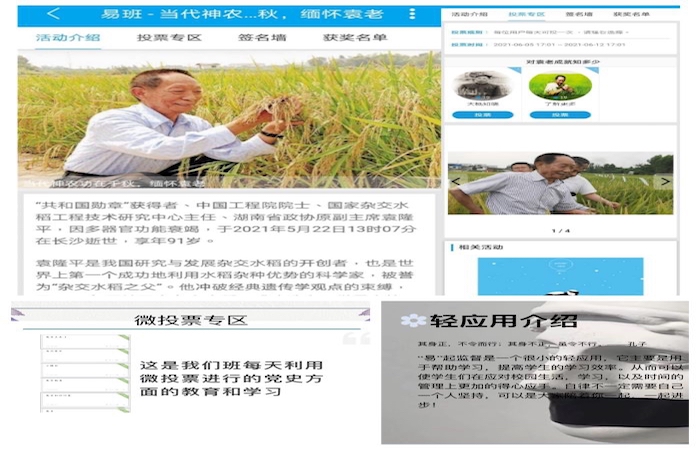参赛选手各展所长,结合专业和班级学生特点,分别在“易”起玩轻应用、“易”起微发声、“易”起享用优课等模块创建了具有班级特色的应用。经过综合评定,20英语5班王晓宇同学以出色的应用主题及解说内容荣获比赛一等奖,魏宏、丁子祎、高舒怡同学荣获二等奖,任书云、张园、马慧茹、阮唯嘉、胡一鸣、谢志豪同学荣获三等奖。