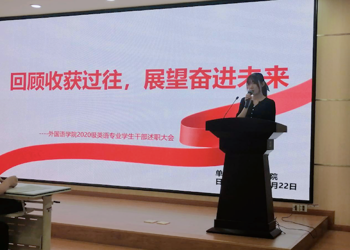 不忘风雨来时路,才能砥砺奋进再出发。本次述职大会总结了一年以来各班委的工作成果和不足之处,也让全体学生干部更加清楚班委的工作职责与定位。20级英语专业班委表示,将继续秉持“来自学生,服务学生”的宗旨,为班级建设贡献力量。