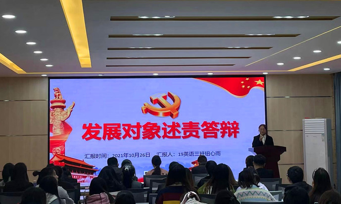 10月26日晚,金年会官网学生第一党支部在逸夫综合楼5306教室举办学生党员发展述责答辩大会。学生一支部书记白晨阳及支部答辩委员会成员、学生党员、入党积极分子及部分学生代表参加会议。