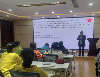在读书分享环节,金年会官网教工第一支部书记,读书会发起人郭飞老师以《读经典、学党史,红星指引青春:我们一起读Red star Over China 》为题,向大家介绍、阐释该书的有关内容,分享个人阅读体会。他介绍Edgar.snow(埃德加.斯诺)的生平经历及其前去延安采访的背景;带领大家品读一个记者眼中的三位伟人(毛泽东、朱德、彭德怀)的人物形象;结合图片,郭飞还向同学们讲解了长征的历程,利用《飞夺泸定桥》和《过雪山草地》等影视、歌曲资料帮助同学们了解和感悟长征的艰难险阻及当今幸福生活的来之不易。最后,他提出有关思考题跟部分同学进行互动。他鼓励同学们多读经典,多读原著。他说: “读英文原著,学会用英语讲解我们自己的故事,这是语言学习者的责任与担当。”
