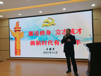 11月17日下午,金年会官网在逸夫综合楼5306教室举办廉洁修身主题团课暨团校开班仪式。校纪委副书记、纪委办主任王国平应邀做“廉洁修身,立志成长,做时代有为青年”主题讲座。讲座由金年会官网党委书记主持。