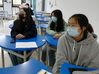 会议开始,刘丹妮向参与者简单说明了召开同心抗疫宣讲会的目的,紧接着播放了两个视频,第一个视频详细介绍了新冠病毒的产生以及变异,第二个则列举了预防新冠病毒传播的方法及措施。视频播放结束,刘丹妮和高祥婉分发了关于活动视频的知识问卷,大家认真地完成了问卷的填写。