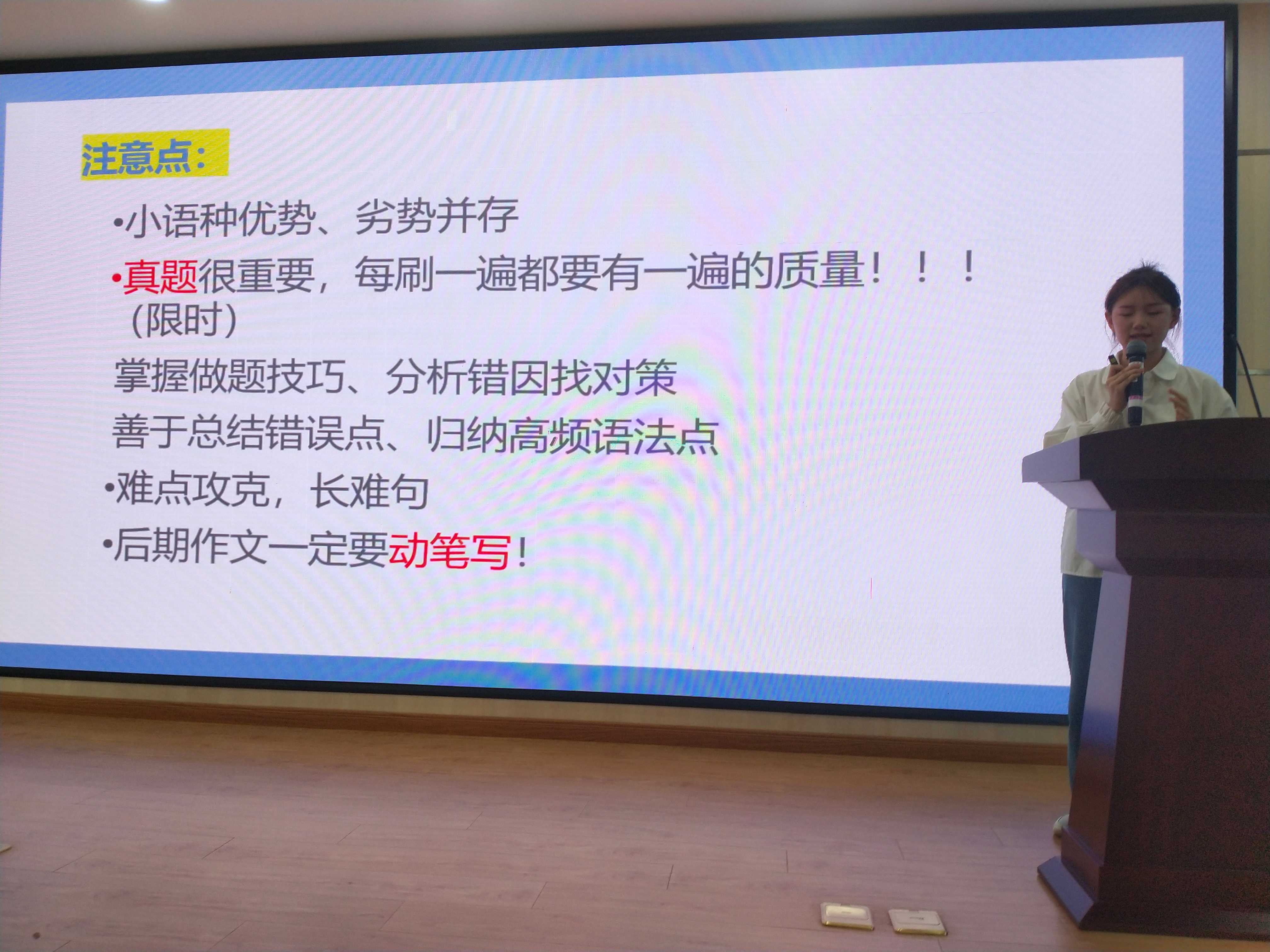 5月5日下午,金年会官网教工第三党支部和院团委联合举办考研分享会,助力青年学子学习、成长、成才。此次活动邀请了文学院2018级汉语国际教育专业董晓璐同学来院分享考研经验,该生参加了2022年研究生招生入学考试,已被大连外国语大学汉语国际教育专业录取为硕士研究生。金年会官网副院长王任傅出席分享会,该院相关专业学生参加分享会。分享会由金年会官网教工第三党支部书记李建萍主持。