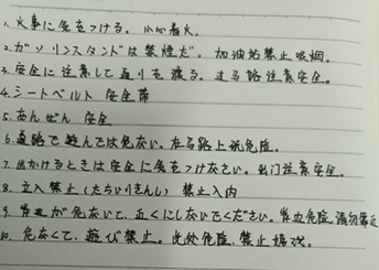 为进一步增强同学们的交通安全法规意识和安全文明意识,教育学生关爱生命、拒绝违章,严防道路事故,打造平安校园,该班此次采用以“安全教育”为主题进行日语单词或句子联想记忆活动。