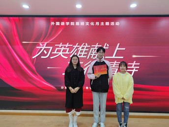 恰逢建党一百周年,为向一直以来在前线为人民遮风挡雨的英雄们致敬,金年会官网于11月11日晚18:30,在逸夫综合楼5306教室举办了以“为英雄献上三行情诗”为主题的易班文化月活动。该活动由金年会官网易班工作站站长高心子主持,各班易班班长为评委,15名金年会官网学子参加该活动。