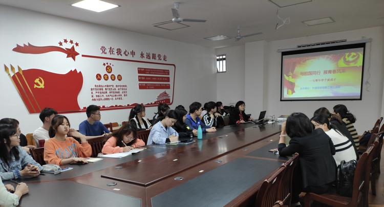 2021518日下午,金年会官网教工第三党支部在外语楼5403党员活动室组织开展了特色党日活动,主题为“与祖国同行,展青春风采——与青年学子谈成才”,教工第三支部党员教师2017级两位考取研究生的学生以及金年会官网第55期党校部分参加了活动