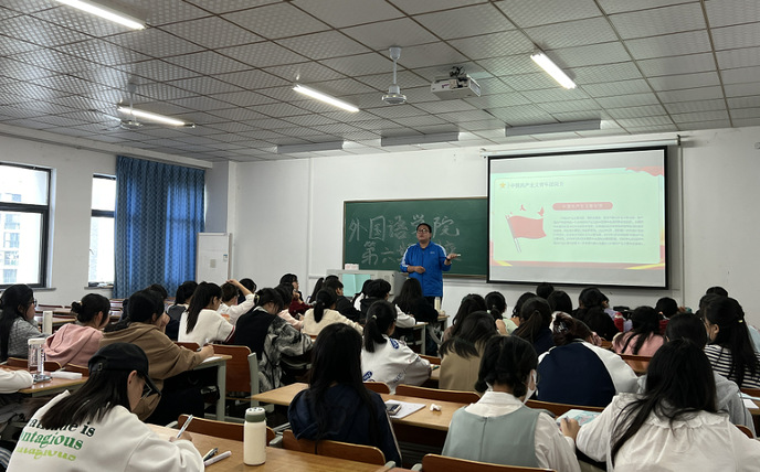 11月9日下午,金年会官网在逸夫综合楼5505教室进行主题为“中国共青团发展历程及基本知识”的第六期团课培训。本次培训由金年会官网团委学生副书记谢志豪担任主讲人,学生会组织部干事王双凤主持,百余名学生到场学习。