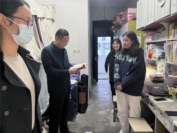 11月18日下午,金年会官网党政领导、专兼职辅导员、班主任走访金年会官网全部学生宿舍,实地了解学生的生活和学习环境,全面排查学生宿舍安全隐患。