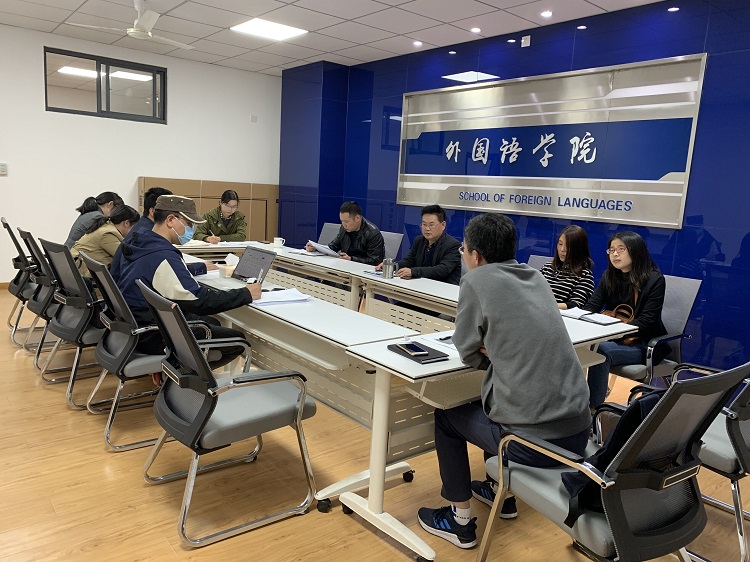 会上,洪常春首先强调了新冠肺炎疫情当前,毕业论文指导工作的严峻性与紧迫性,同时也肯定了2020届本科毕业论文工作所取得阶段性成果。接下来,英语教研室负责人王任傅博士针对因疫情原因论文指导、评阅及答辩工作调整及线上答辩环节安排和与会人员进行了沟通交流。他从教师学术发展和学生成长成才的角度,分析了毕业论文工作对人才培养的重要性,希望指导教师要认真负责,严格按照有关规范进行指导;他还就今后毕业论文工作改革与其他大学英语教研室(副)主任进行了磋商。最后,院长黄先进指出:毕业论文作为外语复合应用型人才培养的重要抓手,不能因疫情影响而降低标准,指导教师要抓好毕业论文进度与质量,全力保障该项工作顺利完成。