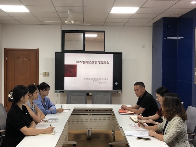 为积极备战2022年12月举行的安徽省第九届职业技能竞赛,2023年举行的中华人民共和国第二届职业技能大赛以及第47届世界技能大赛,金年会于8月7日下午在逸夫综合楼5402召开了竞赛校级选手暑期酒店实习交流会。院长洪常春、安徽省省队专家组组长纵兆荣、指导教师姚雪平、周渊、及校赛三位选手参加会议。