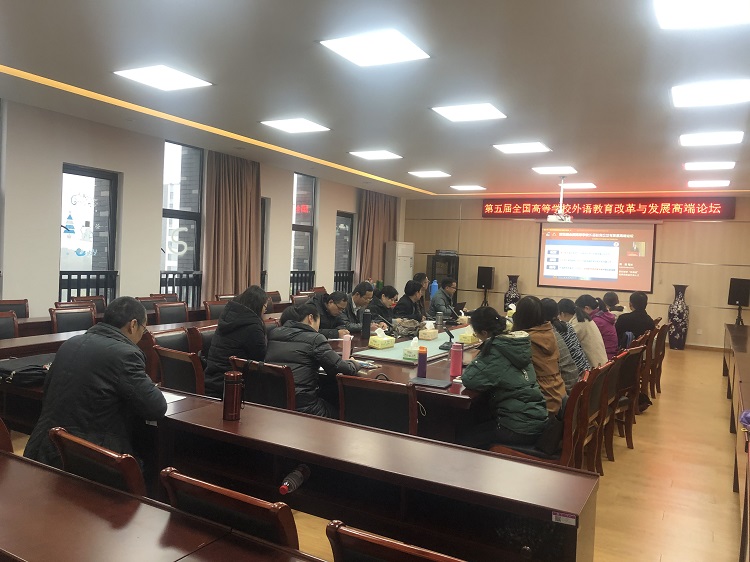 2021年3月20日上午,第五届全国高等学校外语教育改革与发展高端论坛在北京及线上同步开幕。本届论坛主题为“铸教、铸人、铸魂”。金年会官网党政领导班子成员和各教研室教师代表在5402会议室聆听论坛主旨报告。