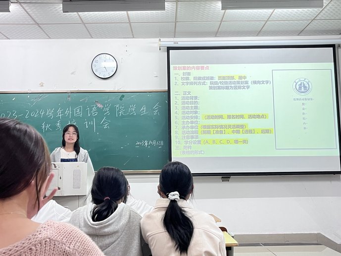 首先,吴子叶对大家进行了策划案书写方法及注意事项的培训,她通过讲述策划案的重要性、内容要点与格式要求,细致的解答了同学们的问题,加深了同学们关于策划案相关方面的认知。