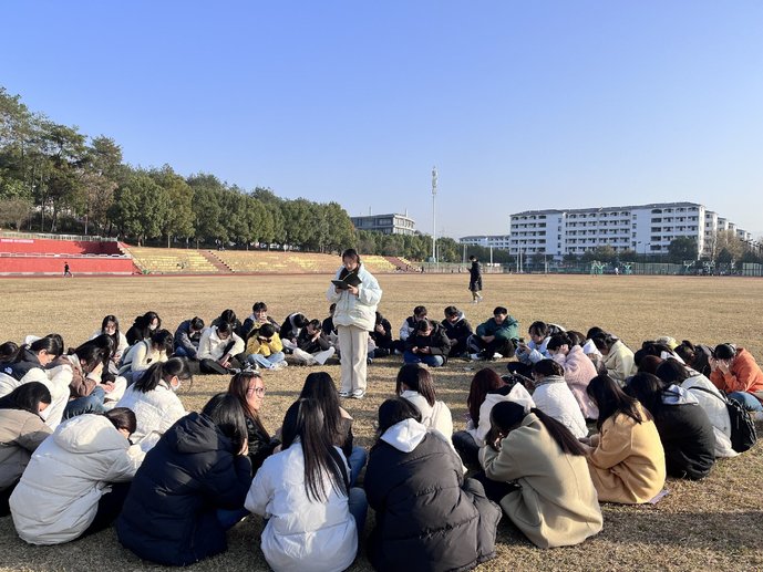 为传承红色基因,共筑美好未来,12月6日下午2点,金年会官网于主席台前操场上举行户外团课读书活动,全体团课成员参与此次活动。