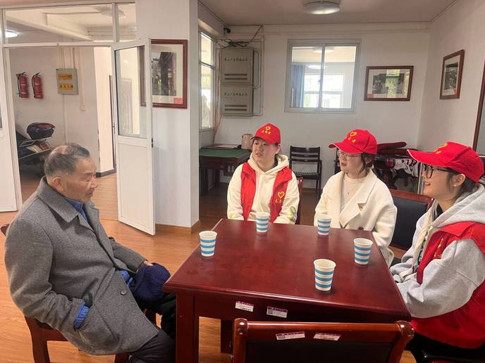 下午3点,党员志愿者们在学院老师的带领下,穿着红马甲来到退休老教师家中。与他们进行了亲切的交流,志愿者们详细询问老教师的身体状况和生活情况,了解老教师的生活需求和心理状态。