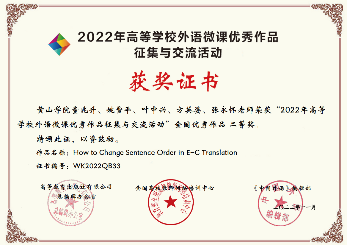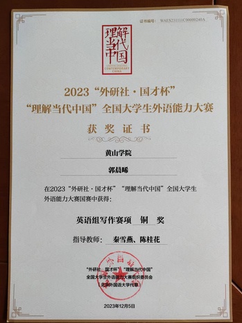 英语专业获批为省级一流专业建设点,英语和日语专业在全省专业综合评估中分获B+和B的良好等级。国际酒店管理、翻译获批为省级教学团队。学院以英语专业为龙头,注重学科专业之间的融合,倡导外语与旅游、商务、翻译等领域的跨界融通学习与研究,初步形成了“英语+旅游”“英语/日语+商务”“英语/日语+师范”三个主要特色专业方向。通过整合三个专业方向的教学与研究,尝试将外语教学和研究转化为语言应用和语言服务。组建商务英语挑战班,持续扩大翻译方向在徽州文化对外传播与黄山旅游对外推介方面的影响。
