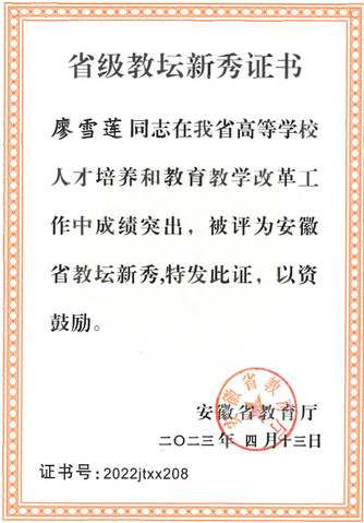 高度重视教育教学工作。通过教学质量考核、教学督导和教学观摩等方式,不断提升教育教学效果。近年来,学院3名教师获评省级“教坛新秀”,2名教师获校青年教师教学基本功竞赛一等奖,2名教师获JINNIAN金年会粉笔字大赛一等奖。1个教师团队获外语微课优秀作品全国交流活动二等奖,1个教学团队获第 12 届“外教社杯”全国高校外语教学大赛安徽省赛区二等奖,1名教师获“全国外语教学大赛(中国文化综合课组)”三等奖,8门课程获批省级“一流课程”,3个教研室获评校十佳教研室。